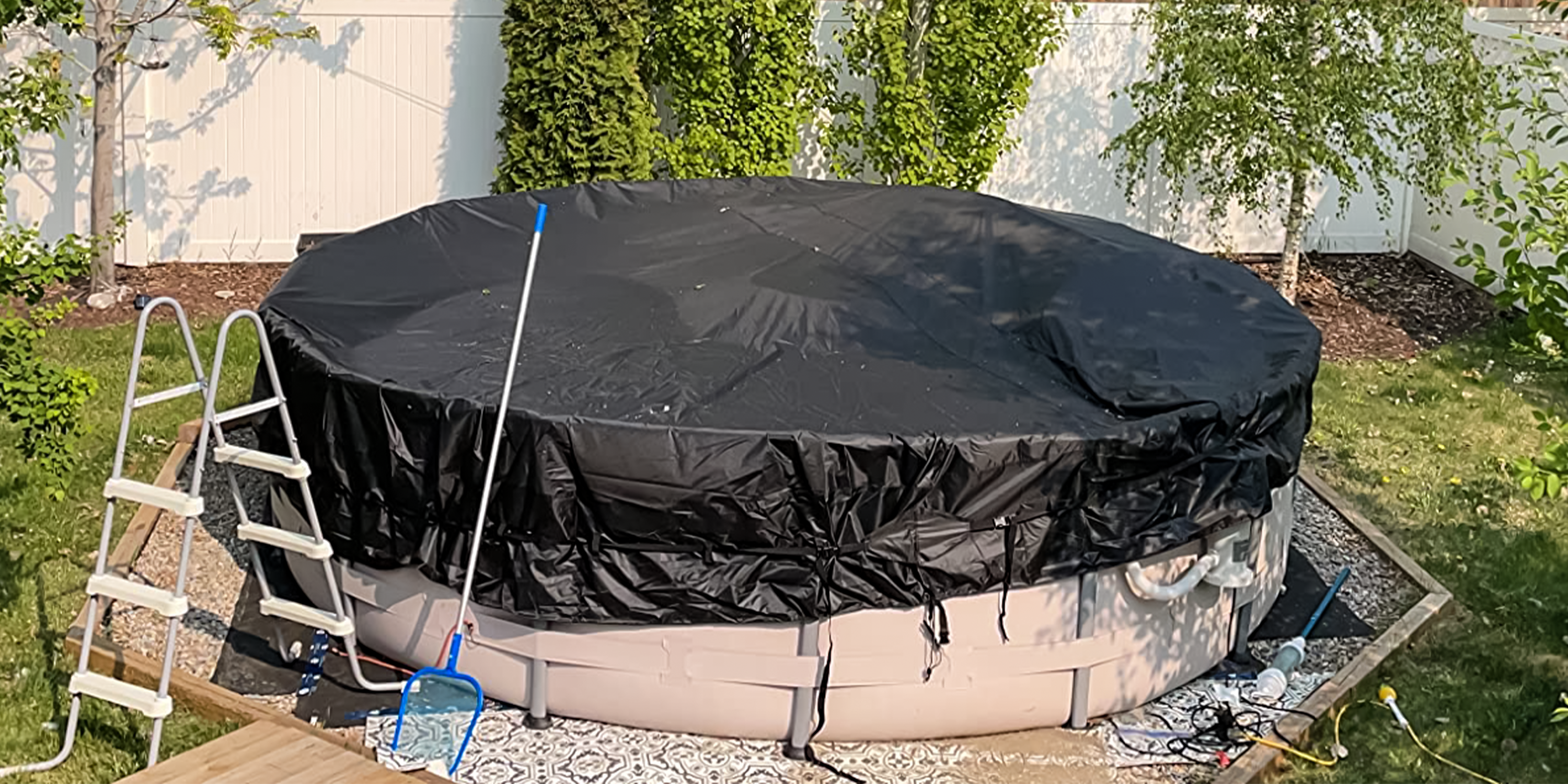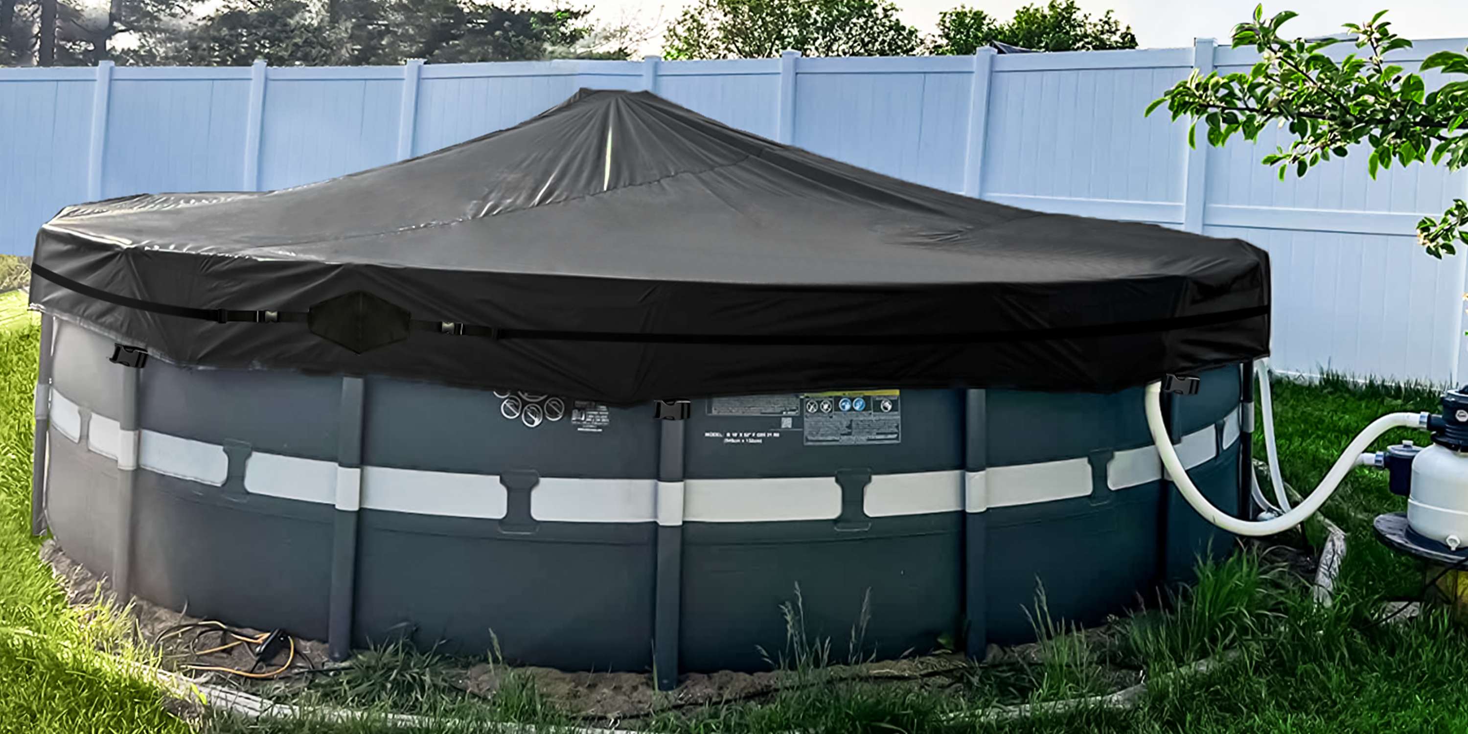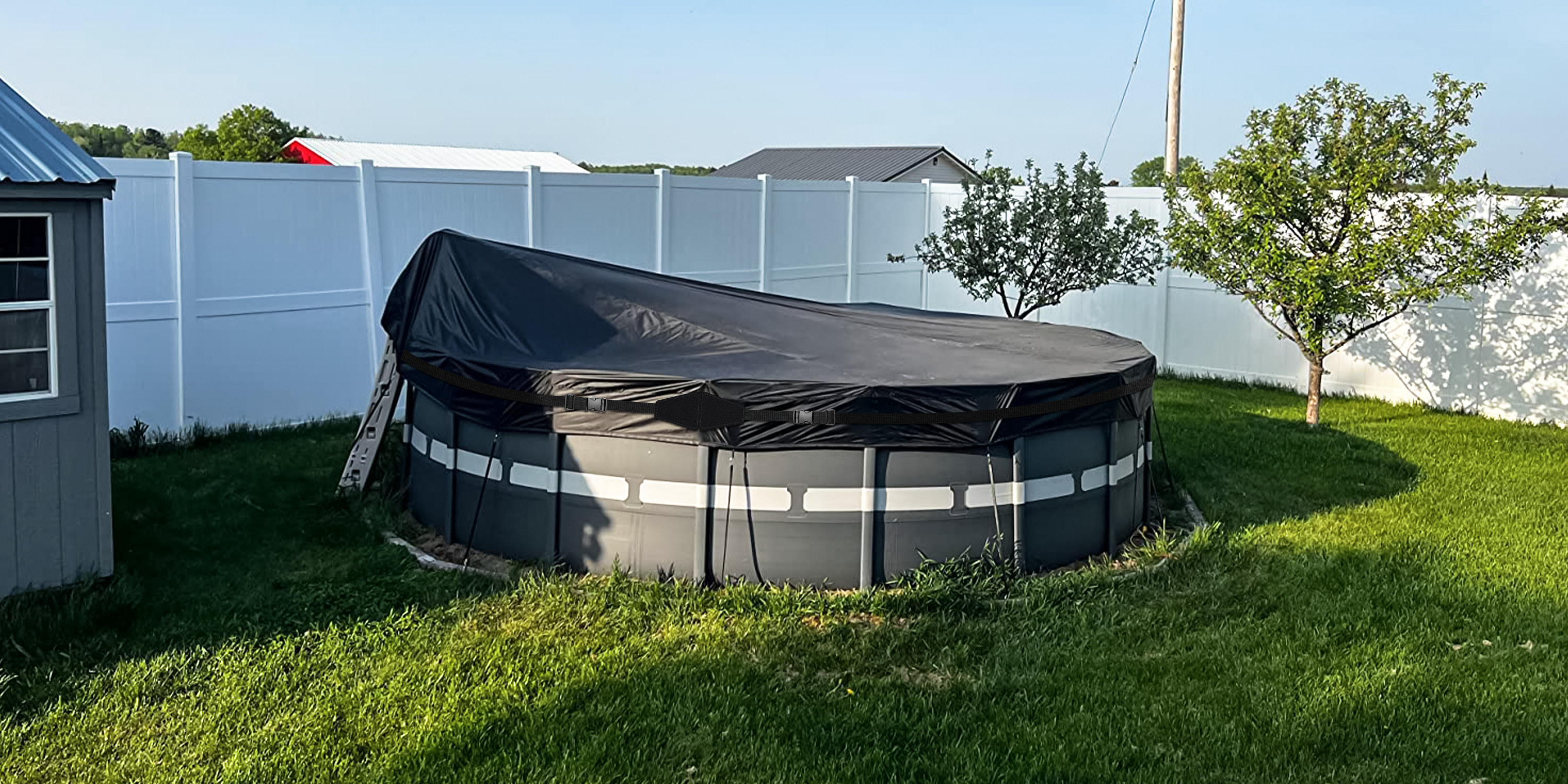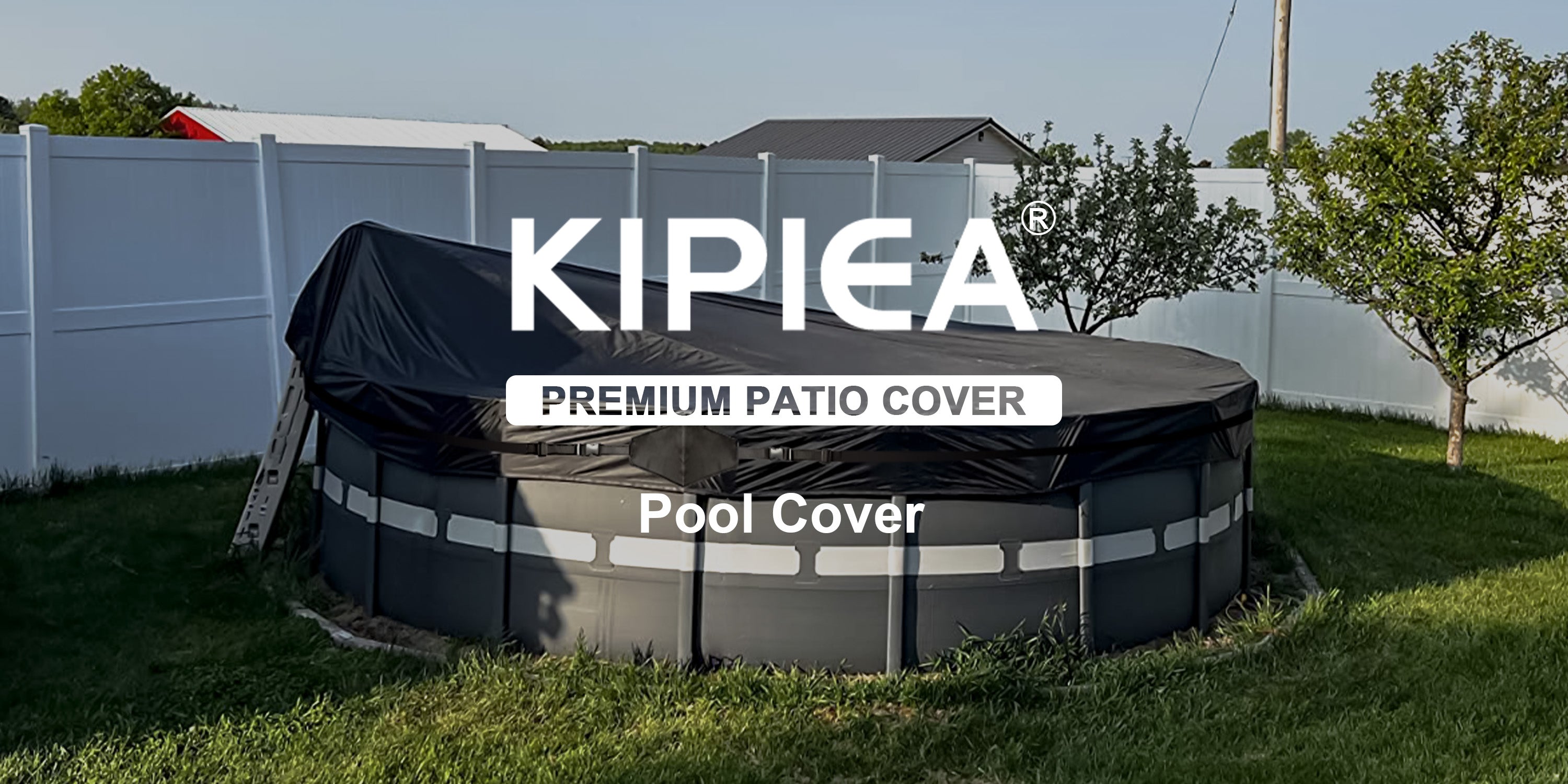 Kipiea 500D Above Ground Pool Cover with Full Surround Straps and 6 Wind-Resistant Buckles for Round Above Ground Pool Cover, Winter Pool Cover, Solar Pool Cover, etc.