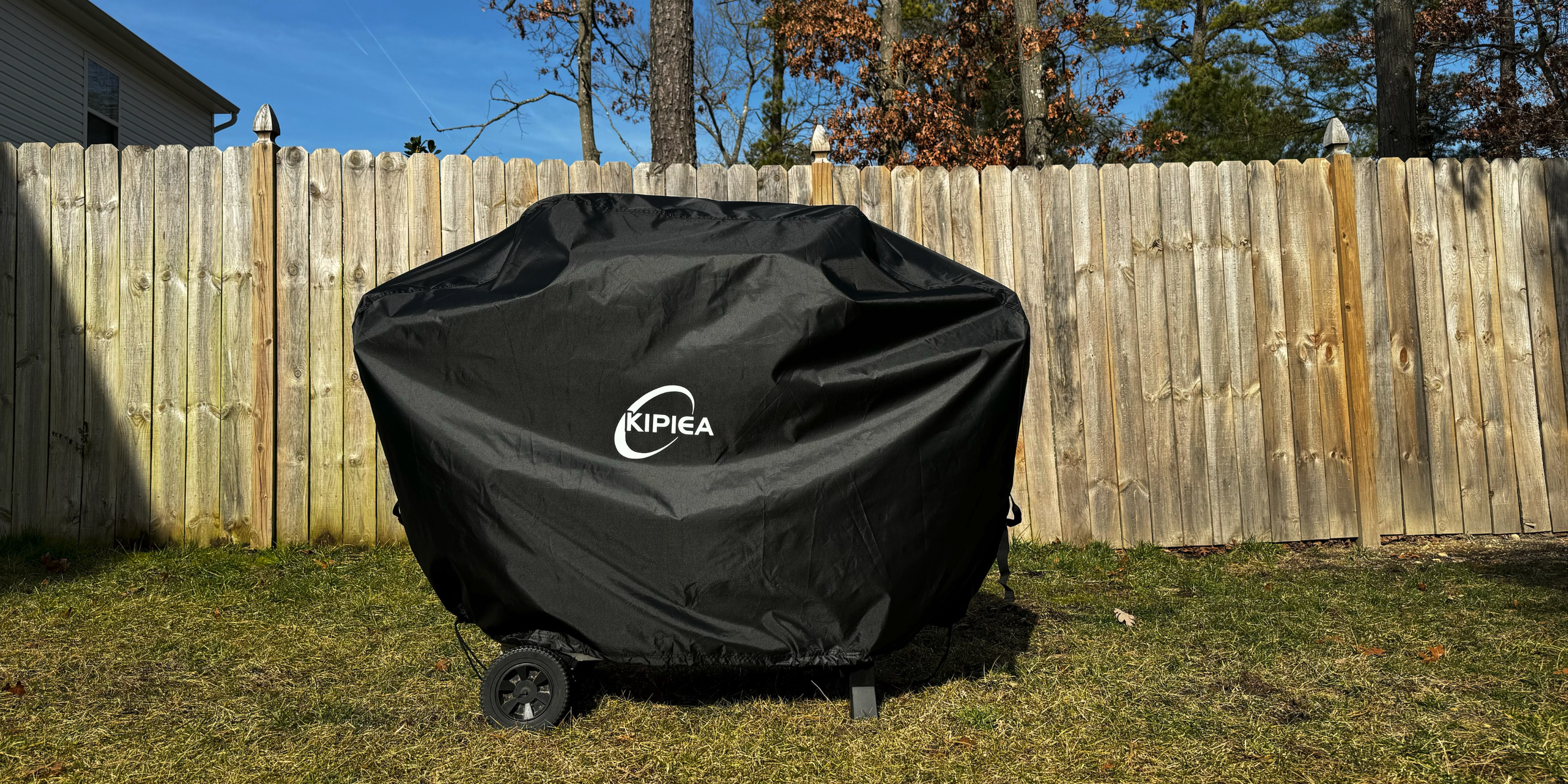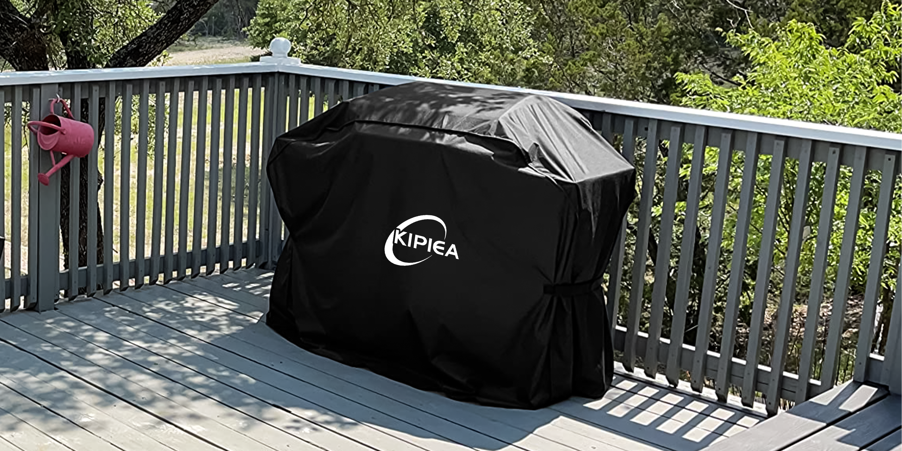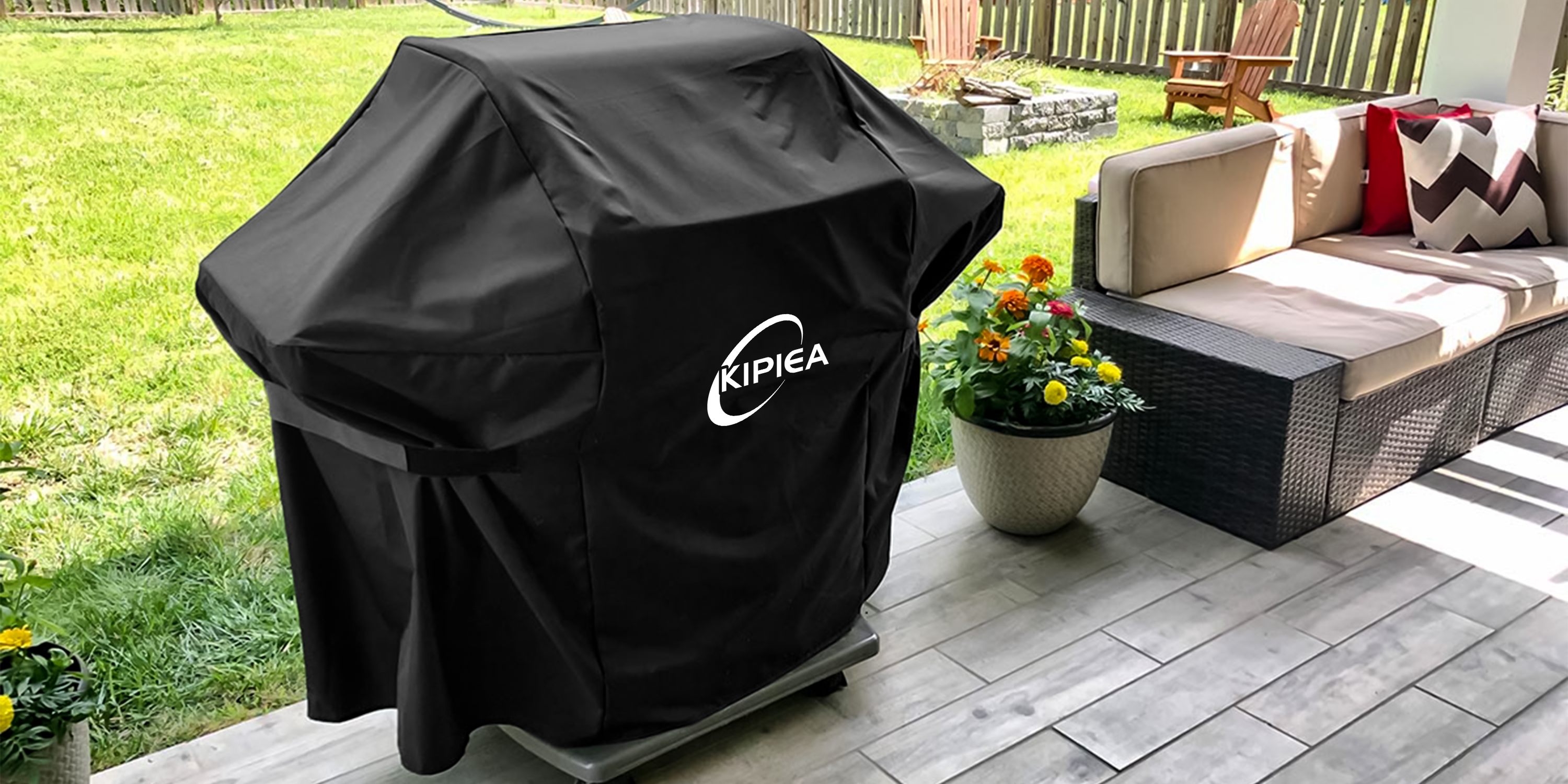 Kipiea 600D BBQ Cover 52 Inch, Heavy Duty Grill Cover with 4 Windproof Buckles, Waterproof and UV Resistant, Fits Most Gas and Charcoal Grills