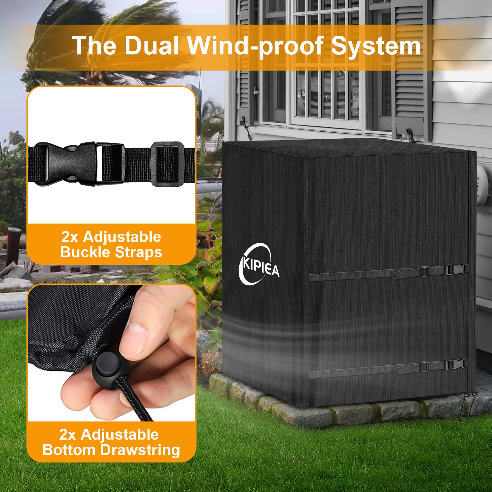 Kipiea 500D Window Air Conditioner Cover Outdoor, Luxiv Outside Window AC Unit Cover Black Dust-proof Waterproof AC Cover Outdoor Window AC Protection Cover